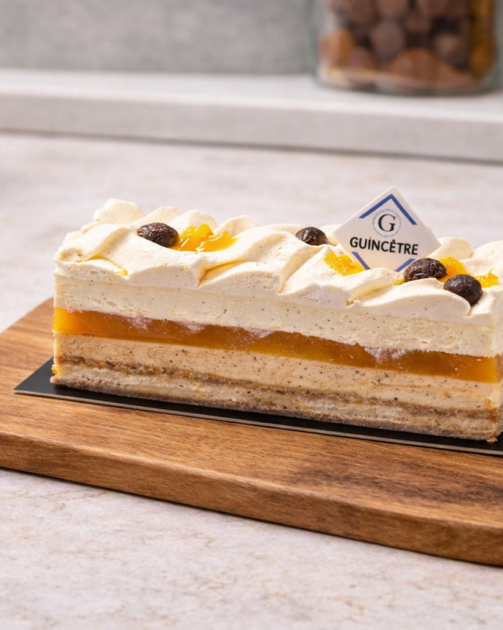 Cet entremets associe l’amande, la noisette, la vanille et l’abricot pour un résultat fin, délicat et parfaitement équilibré.
